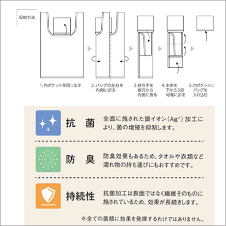 付着した菌類を抑えて清潔に保つため、毎日のお買い物に最適です。