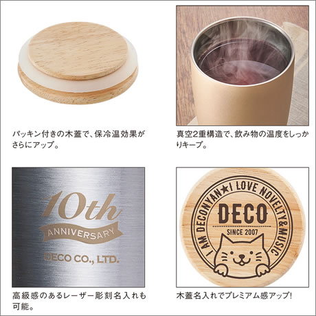 2.真空2重構造のステンレスタンブラーと、パッキン付きの木蓋で、保冷温効果が抜群。