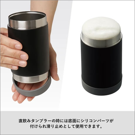 タンブラーとして使用する際は底面にシリコンを取り付けて滑り止めとしてお使いください。