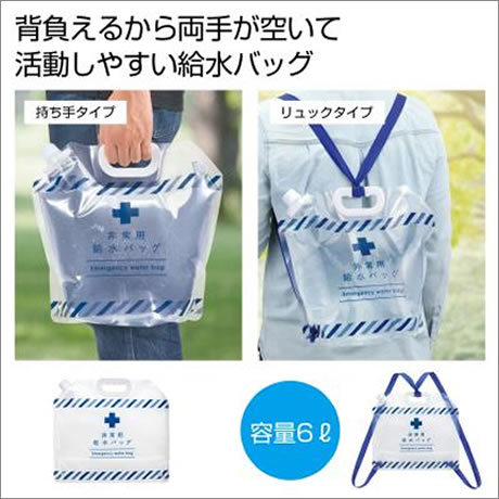 両手が空いて活動しやすい給水バッグ。もちろん手持ちもOK。