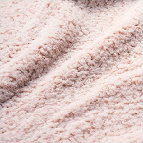 表も裏もふかふかの肌触り、ずっと触れていたくなるモコモコ生地は、空気層があたたかさをしっかりキープ。