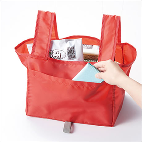 しっかり機能のお買い物バッグは小さくたたんで大きく使えます。