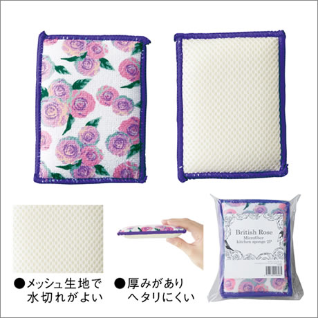 ブリティッシュローズ・マイクロファイバーキッチンスポンジ2P