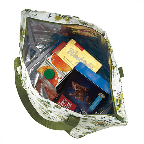 買い物に楽しさを演出する、リゾート柄クーラーバッグ。大きめながらコンパクトに携帯できるのもポイント。