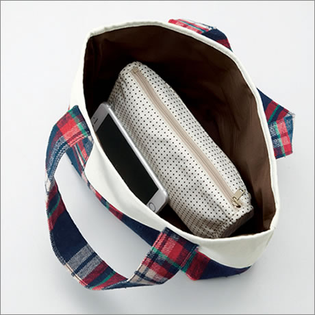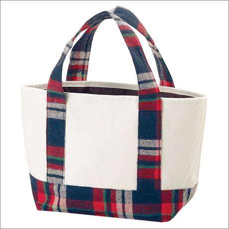 丈夫で使いやすいキャンバス生地のバッグ。チェック×ツイードで秋らしさをさり気なく。