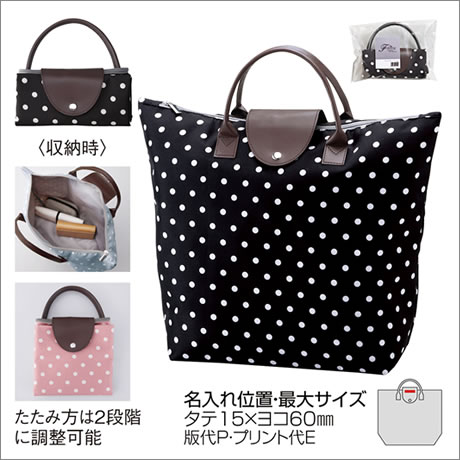 折りたたみドット柄トートバッグ 印刷可