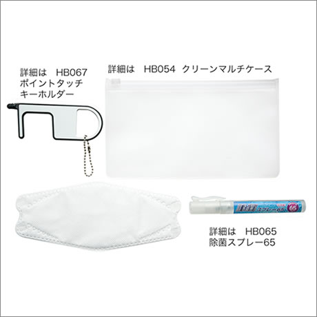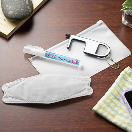 内容/クリーンマルチケース・マスク・ポイントタッチキーホルダー・除菌スプレー65