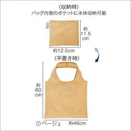 本体サイズ | 使用時/約46×60cm(持ち手含む) 収納時/約12.5×11.5×1.5cm |