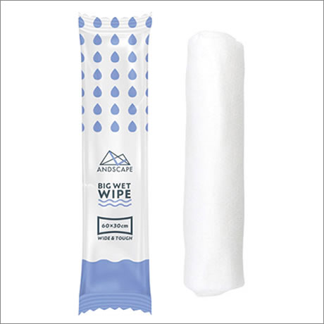 厚手で丈夫なフェイスタオルサイズ。体も拭ける超大判のウエットシートです。レンジであたためてもOK。