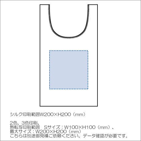 2色、3色印刷、熱転写印刷範囲 Sサイズ:W100×H100(mm)、最大サイズ:W200×H200(mm) こちらは別途御見積ご依頼ください。データ確認が必要です。 |