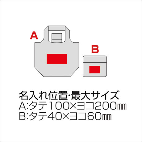 シルク印刷 サイズ 本体A:タテ100×ヨコ200mmまたは、ポケットB:タテ40×ヨコ60mm(1色まで)