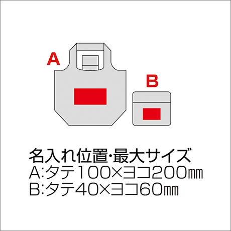 シルク印刷 サイズ 本体A:タテ100×ヨコ200mmまたは、ポケットB:タテ40×ヨコ60mm(1色まで)