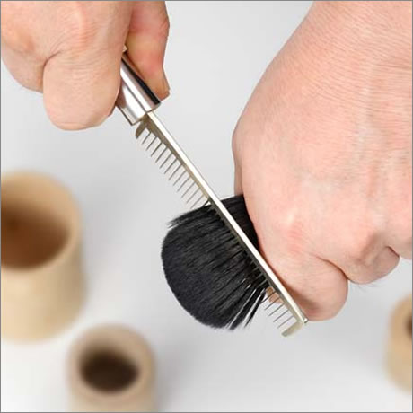 世界に誇る熊野の化粧筆。筆司の手作り極上品質化粧筆。穂先をカットしない熊野の化粧筆は、穂先がやわらかくやさしいので肌触りが違います。メイクのノリや持ちも断然違う「本物」の逸品です。