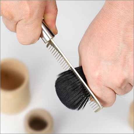 世界に誇る熊野の化粧筆。筆司の手作り極上品質化粧筆。穂先をカットしない熊野の化粧筆は、穂先がやわらかくやさしいので肌触りが違います。メイクのノリや持ちも断然違う「本物」の逸品です。