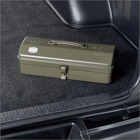 お車乗車時の備えに!1台に1つあると安心な車載用防災セットです。オシャレな工具箱に収納。中身を出せば工具箱としても使用でき、コンパクトで場所を取りません。