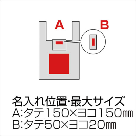 シルク印刷本体中央 サイズA:タテ150×ヨコ150mm(1色まで)または収納時中央 B:タテ60×ヨコ20mm(1色まで)いずれか指定