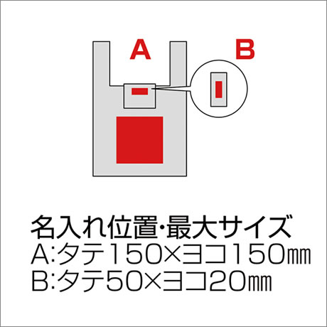 シルク印刷本体中央 サイズA:タテ150×ヨコ150mm(1色まで)または収納時中央 B:タテ60×ヨコ20mm(1色まで)いずれか指定