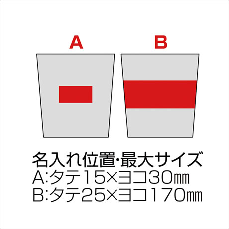 ※回転シルク印刷 B:タテ25×ヨコ170mm(1色まで)は別途御見積ご依頼ください。 |