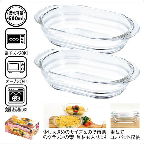 - HARIO・耐熱ガラスグラタン皿2個セット