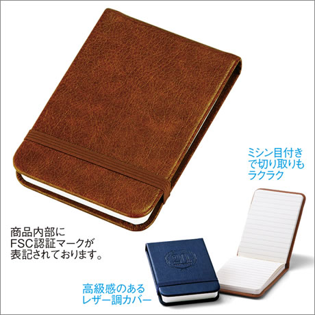 FSC認証済みの紙を使用した環境に配慮したメモ帳。