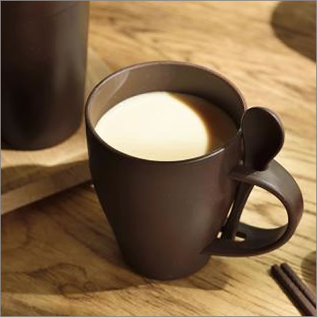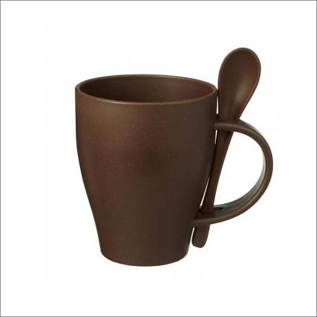 コーヒー豆の風合いを感じさせる便利なスプーン付きマグカップ。
