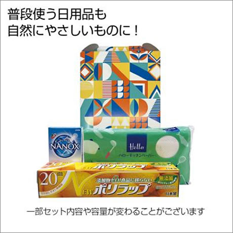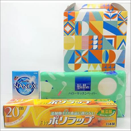 印象的なデザインのパッケージ入り日用品ギフトセット