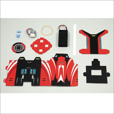 プロペラ固定パーツ(上)×1\nプロペラ固定パーツ(下)×1\n紙製プロペラ×1\nモーター×1\n輪ゴム×1\n紙製連結パーツ×1\n単三電池ボックス×1\n両面テープ×1\n紙製ハンドル×1\n紙製ボディー×1\n紙製電池ケース×1