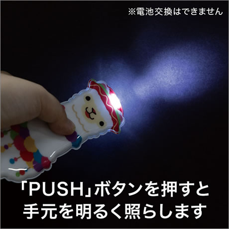 災害時にも役立つ、かわいくて便利なLEDライトです。""PUSH"" ボタンを押すと帽子部分のライトが点灯、手元を明るく照らします。