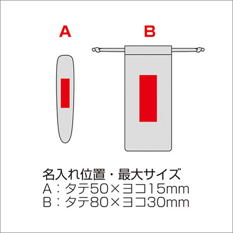 ※シルク印刷1色 巾着タテ80×ヨコ30mmは別途御見積御依頼ください |