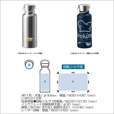 別途見積■回転シルク1色側面/W220×H130(mm)、インクジェット印刷範囲天面/φ30(mm)、側面/W234( 塗り足し範囲を含む)×H145(mm)、レーザー印刷:側面/W50×H50(mm) |