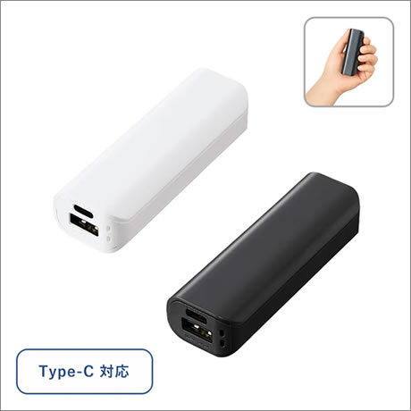 スマートフォン約1回分の充電が可能で、ポーチなどに入れて持ち運びにも便利なサイズです。