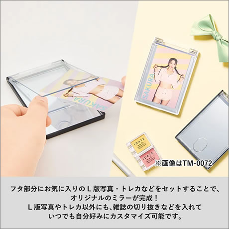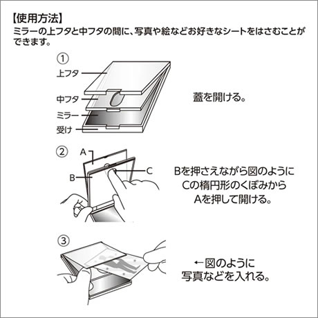 フタ部分にL版写真をセットすることで、オリジナルミラーが完成します。