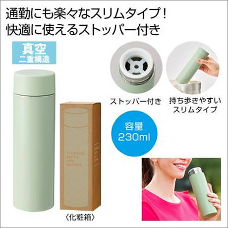 - ストッパー付き真空ステンレスボトル230ml(グリーン)