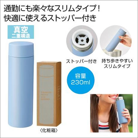 ホーム > ノベルティ >  ノベルティ検索結果  >  ストッパー付き真空ステンレスボトル230ml(ブルー)