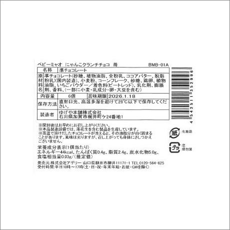 ベビーミャオ にゃんこクランチチョコ 苺 ※