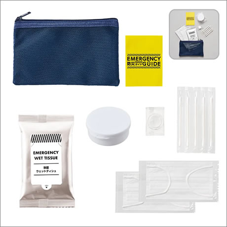 ホーム > ノベルティ >  ノベルティ検索結果  >  防災緊急7点セット メッシュポーチタイプ ネイビー