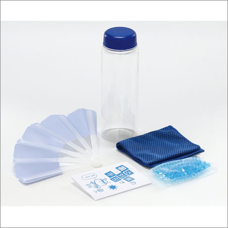 セット内容:ボトル・扇子・クールタオル・保冷剤・暑さ対策の手引き×各1