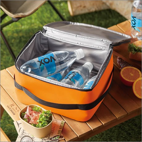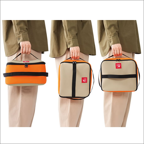 中に入れる商品の形状やバランスによって、入れ方や持ち方が変えられる保冷温バッグです。
